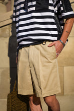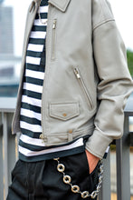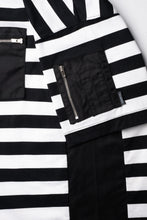 しっとりと肌馴染みが良く柔らかな度詰コットン生地に、光沢のあるナイロン生地をドッキングさせスポーティーさと立体感をプラス。MA-1由来の袖ポケットと肌離れの良いボキシーなシルエットが抜け感を加速させ、よりアクティブな印象に。太めのストライプ柄が合わせ方次第でモダンにもシックにも変化します。